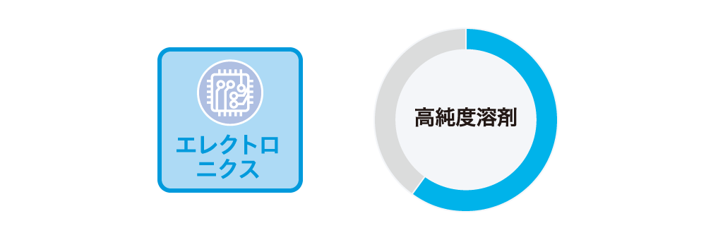 当社は、半導体や液晶ディスプレイの製造プロセスで用いられるフォトレジストの原料となる高純度溶剤を製造しており、国内でも高いシェアを占めています。